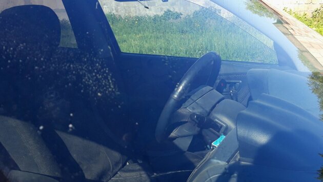 Автолюбитель протер стекло жидкостью для мытья стекол. Непонятные вкрапления визуально исчезли. Но на ощупь все еще ощущались.