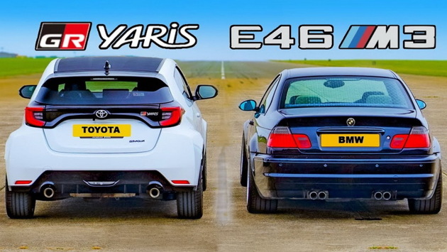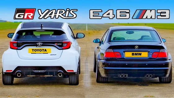 Британский YouTube-канал carwow устроил дрэг-гонку между купе BMW M3 в кузове E46 и новым хэтчбеком Toyota GR Yaris. Несмотря на двадцатилетнюю разницу в технологиях, по исходным характеристикам соперники близки. Победителя определили после серии параллельных стартов с места на четверть мили, парных заездов с хода с 50 миль в час (80 км/ч), а финальным тестом была оценка эффективности тормозных механизмов со скорости 70 миль в час (113 км/ч).