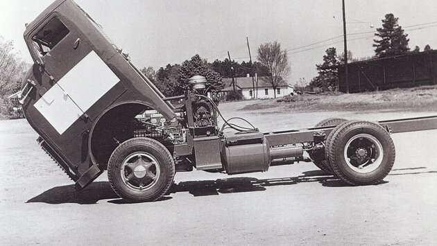 Этот грузовой автомобиль немного позже получил прозвище Tall Boy - Высокий Парень. В нижней части, с обеих сторон от двигателя располагались вместительные багажники. Нельзя было сказать, что водителям было удобно добираться до мотора. Боковые люки позволяли провести только мелкий ремонт. Для того чтобы совершить более серьезные процедуры, приходилось разбирать в кабине пол. Был в автомобиле и еще один недостаток - покатый пол негативно сказывался на обзорности.
