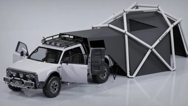 Электрифицированный пикап AMC Wolf+ должен появиться уже в 2023 году. Он будет оборудован геодезической палаткой на крыше.