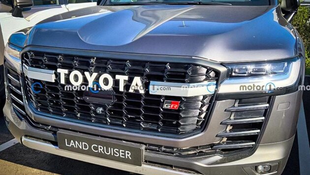 На снимках Land Cruiser 300 предстал без ретуши, в GR Sport горизонтальные ламели решетки радиатора заменены на полностью черный сетчатый узор, а шильдик Toyota – на крупную белую надпись. На решетке и боковых дверях имеются эмблемы Gazoo Racing.