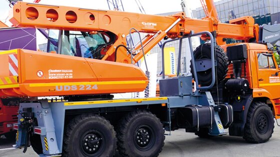 Конкурента этой модели собрали и на заводе «СПМ Авто». Установку UDS 224 водрузили на внедорожное шасси КамАЗ-43118. Запитали его от мотора через коробку отбора мощности. На стенде Zoomlion демонстрировались две модели серии E: ZE215E и ZE360ELR. Первая эксплуатационной массой 21,3 тонны оборудована двигателем Cummins B5.9C мощностью 150 лошадиных сил.