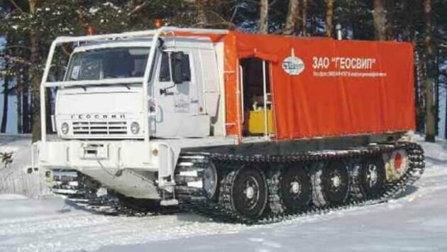 Для создания такого необычного грузовика была использована платформа от вездехода МТЛБ. Эта модель считается военной, поэтому обладает повышенным уровнем комфорта. Днище КАМАЗа было усилено листовым железом. Кроме того, в ходе модернизации заменили устаревшие детали и провели проверку всех катков на пригодность.