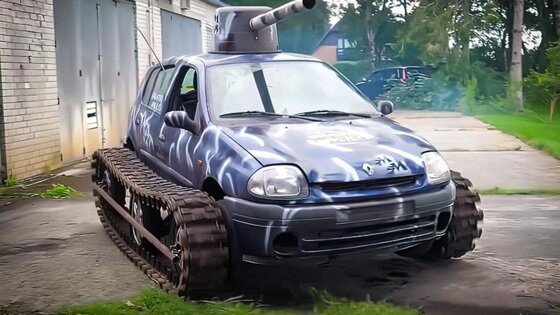 Нидерландские блогеры опубликовали на YouTube-канале испытание самодельной модели Renault Clio образца 1990-х годов. Автомобиль после доработки приобрел некое подобие танка. Стоит отметить, что испытания самоделки закончились уничтожением сцепления и поломкой выхлопной системы.