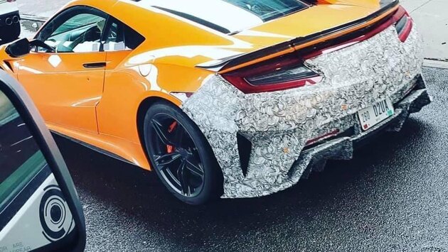 Acura NSX дебютировал в 2015 году как модель 2016 года, и за это время он не сильно изменился, за исключением опций, настроек производительности и случайных специальных цветов. Теперь мы впервые видим NSX, одетый в какую-то камуфляжную накидку, что говорит нам об изменениях в работе. Есть всего несколько изображений оранжевого NSX, которыми nsxjon поделился в Instagram, и только одно позволяет нам достаточно близко подойти к задней части. Мы видим, что задняя панель получает пересмотренные угловые воздухозаборники, которые выглядят значительно уже и немного выше. Центральное вентиляционное отверстие выглядит шире, и хотя задний диффузор не выглядит больше, он, кажется, выделяется немного сильнее. Задние фонари и спойлер выглядят точно так же, как и нынешняя модель. Большие нижние воздухозаборники по существу разделены на две части, создавая меньшие отверстия по углам со вторым, вертикально ориентированным набором ближе к середине. Трудно сказать, есть ли видный разделитель, сидящий низко на фасции – мы могли бы просто видеть тень, но это выглядит так, как будто там что-то есть. Как и сзади, фары выглядят одинаково, а капот несет те же линии кузова с вентиляционными отверстиями по краям. Стоит отметить, что это может быть и не подтяжка лица NSX. До нас дошли упорные слухи о том, что скоро появится NSX Type S и/или Type R. Учитывая мягкую обработку сзади стандартным спойлером для губ, мы очень сомневаемся, что это будет Тип R. Однако он может соответствовать роли Типа S с модернизированным внешним видом, чтобы отличить его от стандартной модели. Напомним, ранее стало известно, что новый MDX Type S от Acura буксирует спорткар TLX из Огайо на Пайкс-Пик.