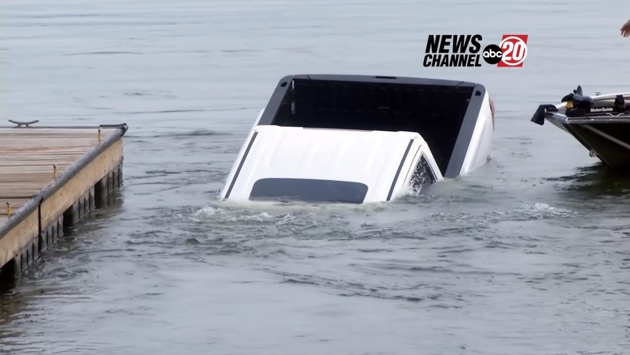 В YouTube появилось видео того, как пикап GMC Sierra случайно тонет в озере