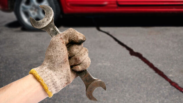 Безопасным, но далеко не самым дешевым вариантом в таком случае является эвакуация в сервис. Поэтому многие предпочитают латать на месте и самостоятельно добраться до мастера, регулярно проверяя топливную стрелку. Начинать ремонт следует с домкрата и локализации утечки, которую можно распознать по образовавшемуся вокруг нее мокрому пятну. Если лопнул сварной шов, можно заполнять бак, например, наполовину и ехать. Но если брешь образовалась в днище, то работы под машиной не избежать.
