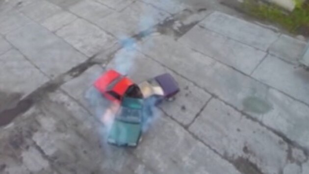 При первом запуске продвинуться с места хотя бы на метр не удалось. Многочисленные попытки привели к тому, что автомобили все же привелись в движение. Добиться вращения не удалось, так как при во время запуска начали ломаться некоторые элементы кузова - пороги и стойки.