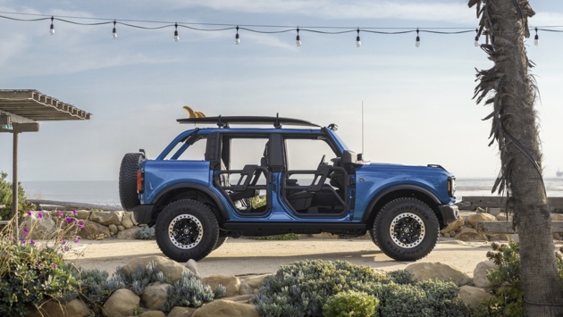 Также Бронко достался сетчатый верх Bimini, крепление для велосипедов Yakima, светодиодная «балка» RIGID, дополнительные прожекторы на зеркалах и эксклюзивный стальной передний бампер, который пока даже не добавлен в каталог аксессуаров.