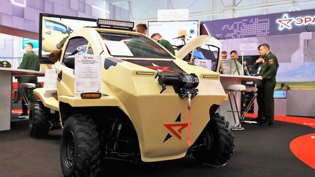 Представленный на форуме образец внедорожника оснащен солнечными батареями на крыше, лебедкой, противоосколочным одеялом и площадкой для беспилотников. Кроме того, ЭРА получила адаптивную подвеску. При этом, по словам разработчиков, оснащение автомобиля легко меняется в зависимости от его «профессии». На их взгляд, лучше всего армейский электрокар проявит себя в разведке благодаря миниатюрности и практически бесшумному мотору.