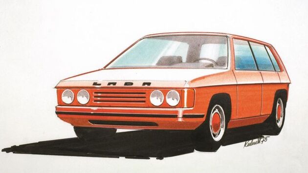 Уникальное изображение датировано 1975 годом, хотя официально Porsche Engineering начала сотрудничать с Волжским автозаводом только в 1979 году. На эскизе показан двухобъемный автомобиль с переднемоторной компоновкой, который предполагался либо как короткий универсал, либо как хэтчбек с увеличенным багажником. Очевидно, в представлении немецких инженеров, именно так должен был выглядеть «народный» автомобиль для граждан СССР.