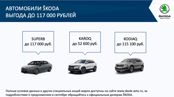 «Специальные условия позволяют сэкономить на покупке машины до 117 тысяч рублей», — Skoda.