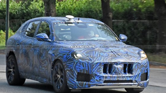Прототип характеризуется более крупными колесами и тормозами, с красными суппортами и просверленными роторами. Есть еще один нюанс, указывающий на то, что это версия Trofeo — выхлопные трубы типа четверки. Однако в остальном дизайн такой же, как и у остальных прототипов Grecale, которые уже можно было видеть на дорогах, за исключением небольшого камуфляжа.