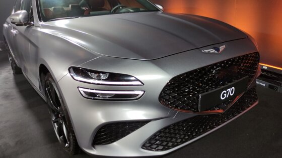 Что же касается новинок, которые мы посмотрели, потрогали и даже посидели в них, то тут все предсказуемо. Спорт-седан Genesis G70 не претерпел особых дизайнерских изменений, но зато теперь предложен в пяти различных комплектациях.