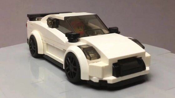 Автомобиль из видео получился достаточно больших размеров, обычная фигурка Lego для такой машины оказалась маленькой. Модель получила все важные отличительные черты GT-R, включая двойные задние фонари, выхлопные трубы и сложную радиаторную решетку.