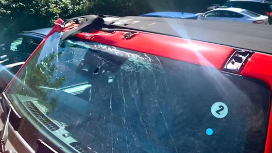 Godot75 оформил заказ на Bronco в дорогой версии Badlands 15 июля, а 21 сентября дилер Ford прислал ему сообщение. К разочарованию клиента, в нем содержалась не информация о скорой доставке, а фотография: у новенького Bronco оказалась помята крыша и рамка лобового стекла, а само стекло покрылось трещинами.