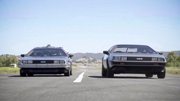 Соперниками по дрэг-рейсингу стали два идентичных DeLorean DMC-12. Причем один из автомобилей представляет собой точную копию машины из фильма «Назад в будущее», включая множество дополнительных датчиков в салоне, а также бутафорные двигатели на корме. По сюжету фантастического фильма в движение такой DeLorean приводила электрическая силовая установка, которая в момент временного скачка на скорости 142 километра в час выдавала 1 645 000 лошадиных сил.
