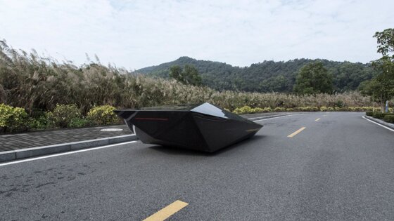 Если оценивать внешний вид автомобиля, он больше напоминает монолитную плиту памятника. И сперва даже нельзя понять, что это настоящее транспортное средство. Конструкция настолько необычная, что в ней нельзя разглядеть основные элементы машины — например, колеса, которых здесь 4. Трудно поверить, но прототип полностью подготовлен к передвижению по дорогам. В конструкции нельзя заметить и такие привычные элементы как фары, моторный отсек и даже двери. Но как тогда попасть в салон?