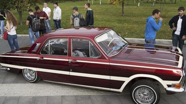 ГАЗ-24 1970. Dolares pl Sueno. Многим может показаться, что на снимках представлен автомобиль Chevy Empala. Но на самом деле это отечественный ГАЗ-24. Правда, в таком оформлении седан стал намного ближе к Новому Свету. На базе уставшего экземпляра, который был выпущен еще в 1970 году, создали сногсшибательный лоурайдер, дополненный гидравлической подвеской. В оснащении - 72-спицевые колеса, которые закрепляются центральной гайкой. Еще одна странность - здесь стоит мотор V8 на 5 литров - Chevrolet Small Block.