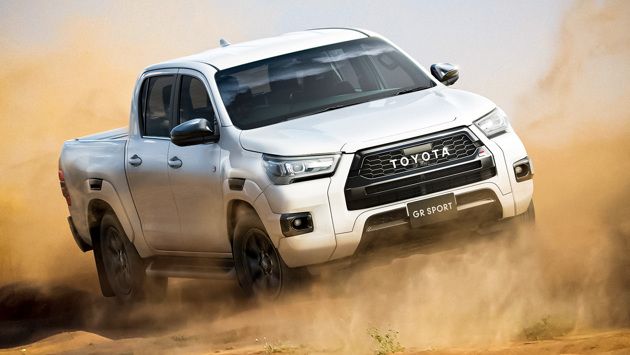 Hilux от Gazoo Racing улучшен по тому же сценарию, что и представленный недавно Land Cruiser 300 GR Sport. «Заряженный» вариант можно внешне отличить от обычного по черной решетке радиатора с сетчатым рисунком и бамперам с более агрессивным дизайном. За счет установки расширителей колесных арок пикап стал шире на 4,5 сантиметра (его ширина составляет 1,900 метра). Довершают облик 18-дюймовые черные диски.
