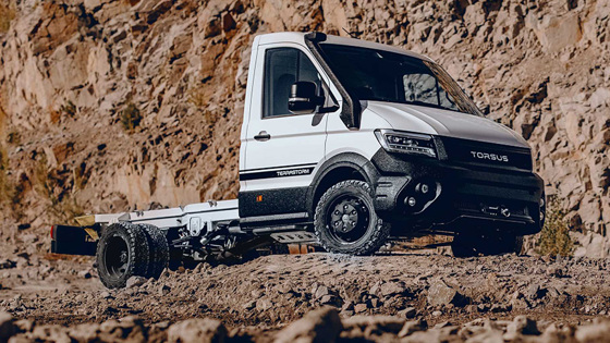 Фирма Torsus представила кабину с шасси Terrastorm, которое можно превратить во все что угодно. Основой послужила платформа Volkswagen Crafter, но словацкие мастера серьезно доработали ее, усилив подвеску и установив защиту двигателя, трансмиссии, радиатора, топливного бака и заднего дифференциала. Просвет увеличили до 250 мм, а углы въезда и съезда довели до 26 и 20 градусов соответственно. Torsus Terrastorm также оснащен внедорожным передним бампером, светодиодной оптикой, дополнительными прожекторами и лебедкой, которая может тянуть до 5,5 тонны. Есть и шноркель, помогающий двигателю дышать более чистым воздухом в пыльных условиях и преодолевать водные преграды. Передние крылья расширены, чтобы уместить 17-дюймовые диски с шинами Goodrich All Terrain T/A KO2, пишет источник. $(function() { SyntaxHighlighter.all(); }); $(window).on('load', function(){ $('.flexslider').flexslider({ animation: "slide", start: function(slider) { $('body').removeClass('loading'); } }); }); Доступно два дизельных двигателя с отдачей 177 л.с. и 410 Нм и 140 л.с. и 340 Нм. В пару к любому мотору можно поставить механику или автомат. Привод – безальтернативно полный. Также покупателям предложат выбрать одну из нескольких конфигураций с колесной базой 3640 и 4490 мм и полной массой 3,5, 5 и 5,5 тонны. Прием заказов стартует 1 января, а поставки обещают начать до конца следующего года. Цены от 51 716 евро (4 230 000 рублей). (function(w, d, n, s, t) { w[n] = w[n] || []; w[n].push(function() { Ya.Context.AdvManager.render({ blockId: "R-A-219559-6", renderTo: "yandex_rtb_R-A-219559-6", async: true }); }); t = d.getElementsByTagName("script")[0]; s = d.createElement("script"); s.type = "text/javascript"; s.src = "//an.yandex.ru/system/context.js"; s.async = true; t.parentNode.insertBefore(s, t); })(this, this.document, "yandexContextAsyncCallbacks"); Вам также будет интересно узнать: Peugeot предлагает полноценную линейку электрических фургонов Peugeot представит свой модельный ряд на выставке «ЮГАГРО 2021» «Соллерс Форд» совершенствует производство кузовов изотермических фургонов