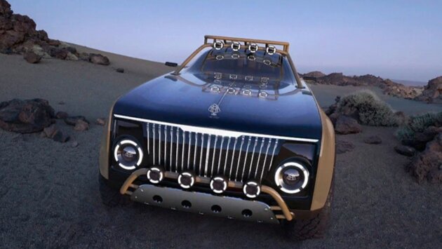Внешне автомобиль больше напоминает багги, созданное для покорения Сафари. Передняя часть модели имеет большое количество светодиодных прожекторов. В салоне установлено два кресла, которые разбираются, создавая условия для полноценного сна на природе. Для отделки использована натуральная кожа светло-коричневого цвета.