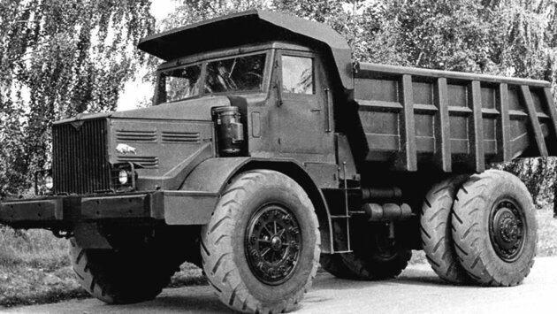 В СССР первые сверхтяжелые грузовики появились вскоре после войны. Их производство освоил Минский автомобильный завод.
