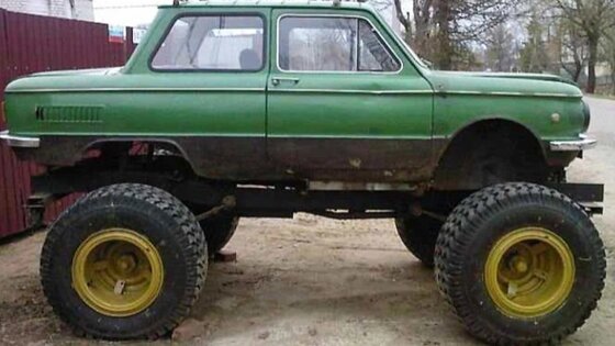 Объявление о продаже "Запорожца" на больших колесах появилось на одной из торговых онлайн-платформ. Судя по опубликованным фотографиям, кузов ЗАЗ 968М установили на шасси полноприводного внедорожника УАЗ-496.