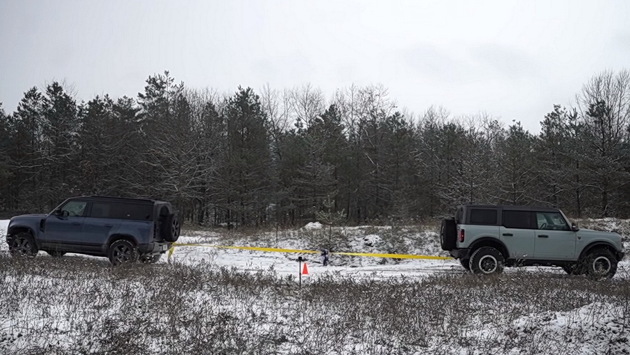 Обозреватель YouTube-канала Sam CarLegion устроил дуэль между новыми Ford Bronco и Land Rover Defender. Бензиновые вездеходы с шестицилиндровыми турбомоторами сразились в перетягивании каната на пересечённой местности, причём для испытаний задействовали версии без всякого тюнинга. Лучшего тягача выявили по итогам четырёх дуэлей, но местами внедорожники не менялись, то есть во всех попытках рельеф местности был на руку «американцу».