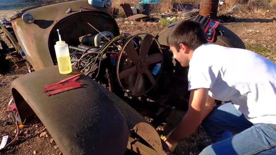 Это помогло вернуть элементам мотора подвижность. После этого к нему подключили аккумулятор, чтобы попытаться запустить, но несколько часов работы кривым стартером так и не дали результата. Дальнейшее расследование показало, что скорее всего проблема в повреждённом распределительном валу. Вероятно, это и стало причиной, почему автомобиль бросили почти 100 лет назад.