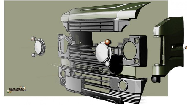 В пакет обновлений входит капот с рельефной выштамповкой, радиаторная решетка, стильный передний бампер, фары круглой формы, а также расширители крыльев.