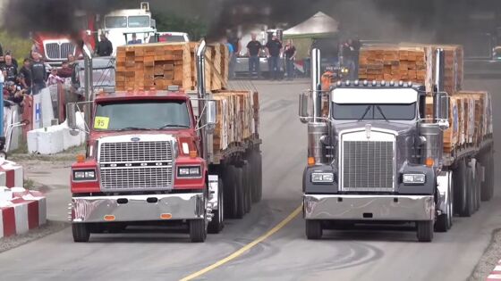 Если вам нравятся грузовики, то вы останетесь в восторге от этого видеоролика: вы увидите, как два полностью гружёных автопоезда пытаются обогнать друг друга в самом неэкологичном дрэге на свете.