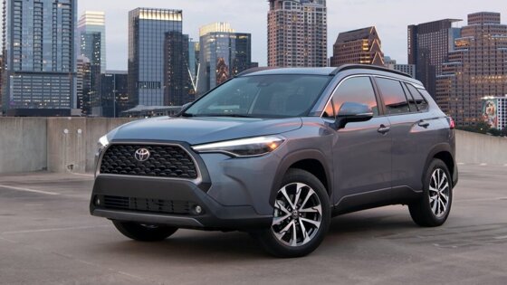 Toyota Corolla Cross была представлена в 2020 году. Это главный конкурент Kia Sportage и Mazda CX-5. Габаритная длина Corolla Cross составляет 4460 миллиметров, а дорожный просвет более 20 см. Под капотом установлен 2,0 литровый турбированный мотор мощностью 171 лошадиная сила. Привод передний или полный, трансмиссия только вариатор. Стоимость машины от 22 195 долларов или от 1,690 млн рублей.