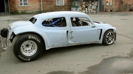 Это больше чем просто "Запорожец". Настоящий спортивный "снаряд", созданный с одной целью: побеждать в дрэг-рейсинге! В салоне (под капот он не влезет) расположен форсированный восьмицилиндровый двигатель от американского спорткара (какого именно - не уточняется), который "питается" чистым нитрометанолом. Этот "аппарат" вообще "не чувствует" массу машины, он возит сам себя. Очень опасный "Запорожец", управлять которым могут только профессионалы.