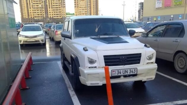 То ли у мастеров не дошли руки сделать кузов внедорожника более угловатым, то ли тюнеры не ставили себе задач сделать точную копию Mercedes-Benz G63 AMG. Но данная переделка смотрится в целом, как незаконченный проект.