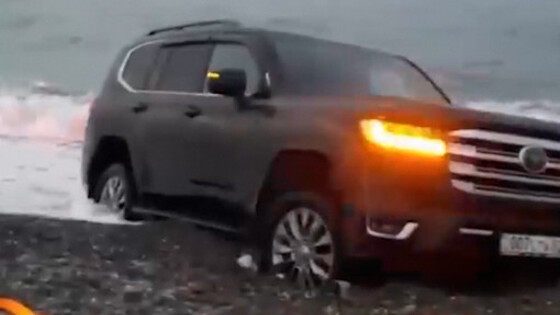 В Сочи мужчина на новом Toyota Land Cruiser застрял на берегу Черного моря