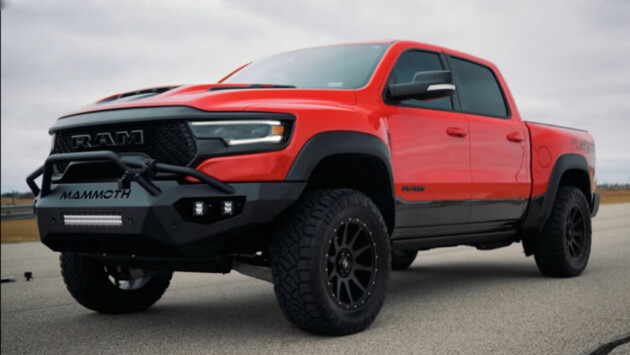 Тюнинг-ателье Mammoth создала свой автомобиль на основе серийного Ram 1500 TRX, сообщает Центральная сужба новостей. В движение Hennessey Mammoth 1000 установлен 6,2 -литровый HEMI V8 на 702 лошадиные силы и 881 Нм максимального крутящего момента. В комплекте с ним идет 8-диапазонная автоматическая КПП TorqueFlite (8HP95). Это позволяет разгонять пикам с места до «сотни» за 4,5 секунды. Henessey Performance увеличили отдачу до 900 или 1000 л.с. на выбор. Первый покупатель получил автомобиль в фирменном цвете модели Ram — Flame Red. Тюнинг-ателье дает покупателю гарантию в 2 года или 24 000 миль пробега.