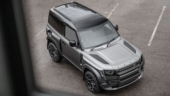 • Трехдверный Defender 90 оснастили 22-дюймовыми коваными легкосплавными дисками Type 57 RS. Кузов выкрасили в фирменный цвет Volcanic Rock Satin, а крышу — в контрастный оттенок Santorini Black. Отделка салона выполнена натуральной кожей цвета Red Designo.