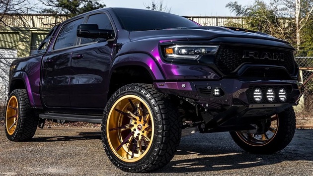 Ram 1500 TRX является королем пикапов с двигателями внутреннего сгорания, по крайней мере, до тех пор, пока не появится долгожданный Ford F-150 Raptor R. Рэпер Лил Бэби недавно сильно модифицировал свой TRX в тюнинг-ателье Road Show International. Первый аспект этого индивидуального TRX, который выделяется, — это фиолетовый внешний вид. Звукосниматель перекрашен или это просто обертка, но в любом случае она соответствует форме звукоснимателя и красиво блестит на солнце. Фиолетовый контрастирует с наклейкой золотого цвета на капоте и белыми наклейками «TRX» на задних боковых панелях. Пикап оснащен комплектом 24-дюймовых колес Forgiato, окрашенных в сочетание золотого и фиолетового цветов, чтобы соответствовать остальной части безумно мощного грузовика. Теперь он также получил кастомные передний и задний бамперы от Addictive Desert Designs. Новый передний бампер особенно впечатляет, т.к. включает в себя три больших светодиодных фары дальнего света, а Road Show International также затонировала фары и задние фонари. Кроме того, был установлен четырехдюймовый лифт-кит, что сделало пикап еще более экстремальным. В стандартной комплектации Ram 1500 TRX покидает завод с 6,2-литровым двигателем Hellcat V8 с наддувом, который выдает 702 л.с. и 881 Нм крутящего момента. Road Show International решила не возиться ни с чем под капотом, но установила новый выхлоп с кошачьей спиной, который, по их словам, добавляет 50 л.с., доведя общую цифру до 752 л.с. за 3,9 секунды и достичь максимальной скорости 250 км/ч. Читайте также о том, что Ford и партнер State Farm представят программу страхования на основе использования в стиле Tesla.