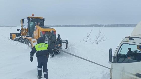 В Оренбургской области сотрудники полиции помогли водителю грузового фургона выбраться из снежного плена. Машина застряла в районе поселке Первомайский в Абдулинском городском округе.