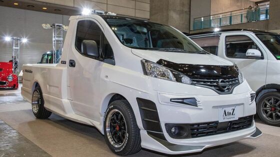 На выставке Osaka Auto Messe 2022 был показан один очень странный автомобиль. Его передняя часть напоминает фургончик Nissan NV200, но сзади сделана грузовая платформа, как у пикапа.