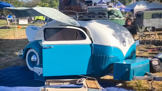 Классические Volkswagen Beetle являются популярными автомобилями для всевозможных модификаций. Некоторые энтузиасты превращают «Жуки» в миниатюрные гоночные машины, другие же используют модель в качестве основы для невероятных кастомных проектов. Однако американец по имени Серхио пошёл другим путём. Мужчина построил на базе Beetle 1965 года миниатюрный автокемпер в форме капли. При этом внутри трейлера специалист разместил все необходимое оборудование для путешествий.