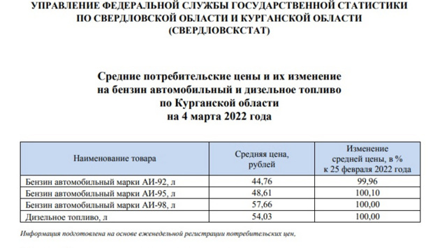 Стоимость бензина в Кургане снизилась после начала санкционной кампании со стороны Западных стран и США. Цена за литр бензина за неделю упала на 0,04%. Об этом сообщается на сайте Свердловскстата.