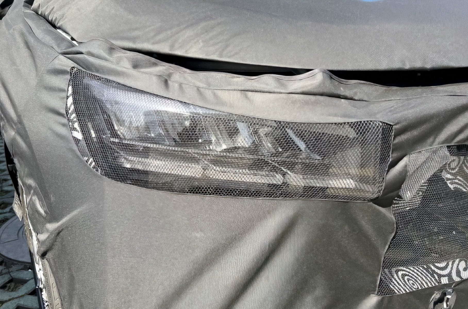 Из-под камуфляжа проглядывает передняя светодиодная оптика, дизайн которой повторяет ту, которая устанавливается на Monjaro. На одной из фотографий также можно рассмотреть некоторые детали интерьера, в том числе скошенный подлокотник и селектор коробки передач, как у Tugella. О кросс-купе напоминают и передние кресла с развитой боковой поддержкой.