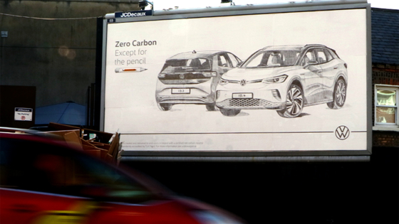 В необычной рекламной кампании специалисты решили продемонстрировать необходимость снижения уровня вредных выбросов для автомобилей. Нарисованный вручную билборд сопроводили слоганом: «Нулевые выбросы. Исключение только для карандаша». При этом электрокары Volkswagen ID.3 и ID.4 выбрали не случайно. В 2021 году батарейные модели стали самыми популярными электромобилями в Ирландии.