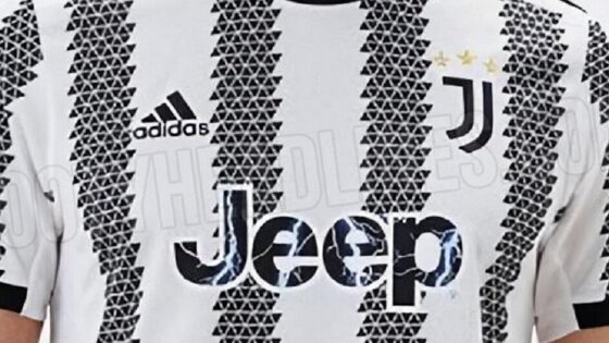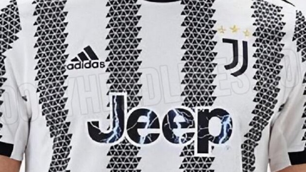 На домашней форме «Ювентуса» на сезон-2022/23 есть паттерн с черными треугольниками вместо полос и электрические разряды на логотипе Jeep