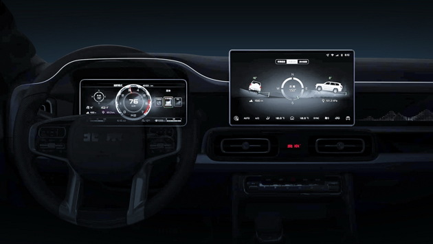 Внешность Beijing BJ60 в лёгком камуфляже показали на прошлой неделе, тогда же была озвучена габаритная длина (5020 миллиметров с запасным колесом) и запас хода в 1000 километров. Теперь китайцы поделились затемнёнными снимками интерьера и крупными планами оптики.
