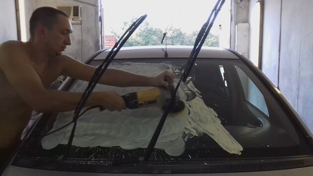 Выполнять работы следует в не пыльном помещении, где есть хорошее освещение. Перед процессом полировки стекло следует отмыть и высушить. Прилегающие участки нужно накрыть пленкой, которая крепится малярным скотчем. Так можно будет защитить лакокрасочное покрытие кузова.