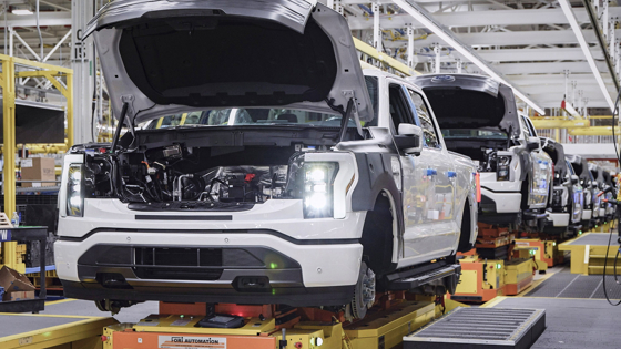 Спустя почти год после премьеры электрического пикапа Ford F-150 Lightning, модель наконец встала на конвейер. Производство организовано на только что построенном заводе Rouge Electric Vehicle Center, расположенном на территории исторического производственного комплекса Ford River Rouge в Дирборне (штат Мичиган), существующего с 1927 года. У новой площадки есть особенность — там отсутствует традиционный конвейер. Вместо него используются беспилотные транспортные платформы, которые возят машины от одного сборочного участка до другого.