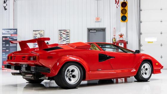 Этот Lamborghini Countach имеет всего около 7300 километров пробега за 35 лет, и принадлежит к ограниченной серии из 66 суперкаров под названием «5000 Quattrovalvole». В настоящее время максимальная ставка составляет 505 000 долларов. Всего Lamborghini произвела 1983 экземпляра Countach. Серия 5000 Quattrovalvole оснащалась специальной головкой блока цилиндров с четырьмя клапанами на цилиндр. Он также имеет колоссальный рабочий объем двигателя 5,2 литра, что ставит его выше большинства других купе с 3,9 и 4,8 литрами. В 1985–1988 годах с конвейеров сошло всего 610 крупнолитражных автомобилей Countach. Продаваемый автомобиль находится в отличном состоянии и полностью обслужен, заменены все жидкости и свечи зажигания, отремонтирован дверной подъемник со стороны водителя. Вариантов отделки салона немного: есть кондиционер на борту и магнитола, но и только. Окна поднимаются и опускаются вручную, и хотя зеркала должны регулироваться электрически, они больше не работают.